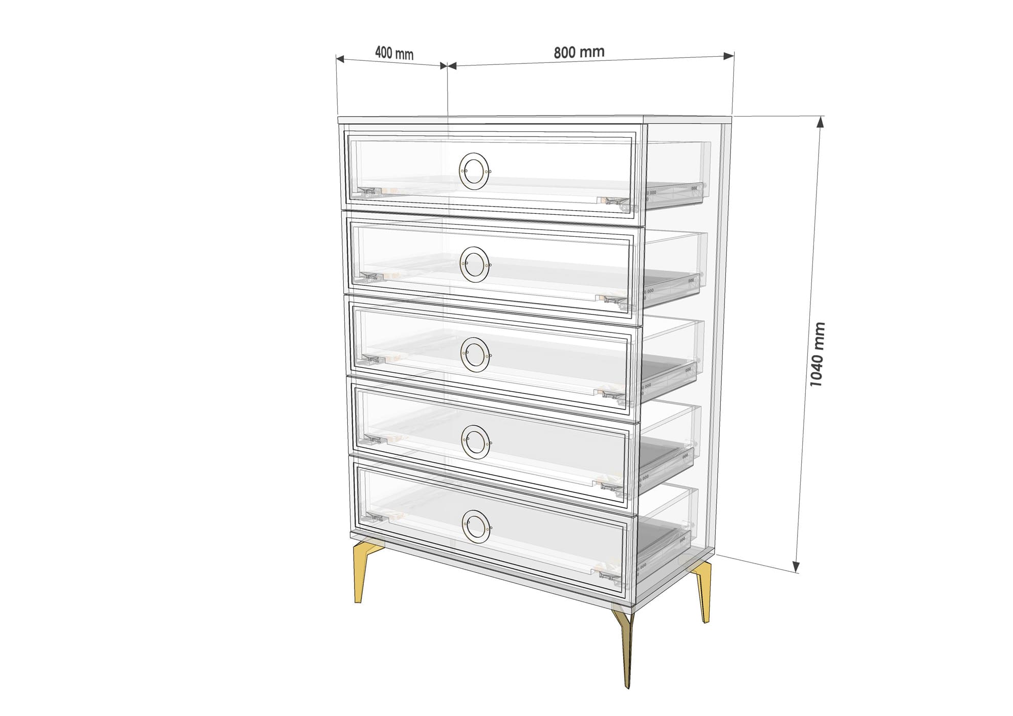 1: Высокий комод Сириум от Geona выполнен в современном стиле и имеет очень интересный дизайн. Он сделан из высококачественных материалов и имеет пять выдвижных ящиков, что делает его идеальным для хранения различных вещей. Комод имеет большой выбор цветов, которые прекрасно сочетаются с различными оттенками интерьера.