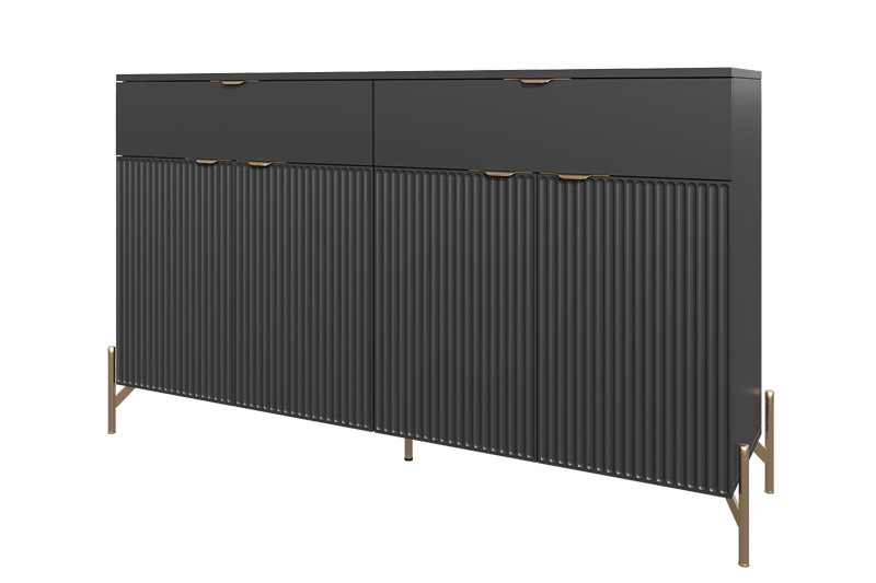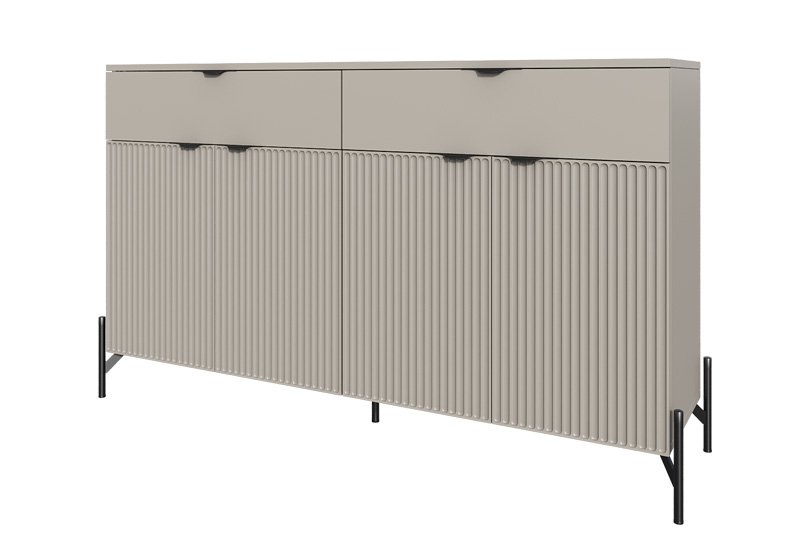 Комод «Нео» — это выразительное сочетание минимализма и архитектурной пластики. Его строгая геометрия смягчается ритмичной текстурой фасада, создавая эффект глубины и динамики.