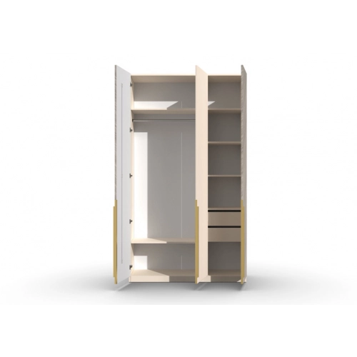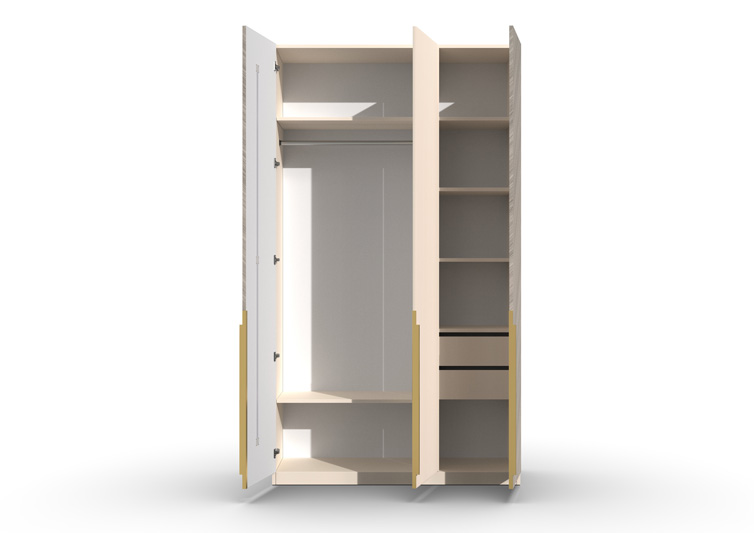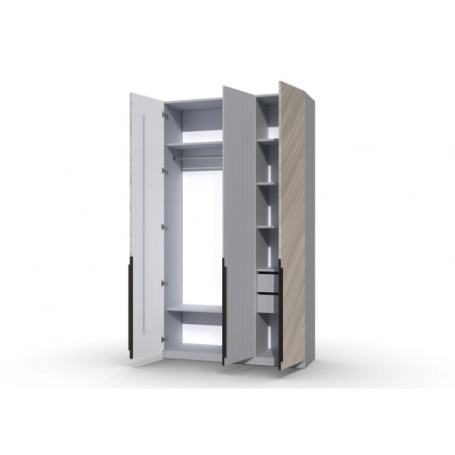 Шкаф 3-х створчатый Шале от фабрики Geona - это элегантное и практичное решение для хранения вещей в вашей спальне или гостиной. Он оснащен выдвижными ящиками и имеет эффектную отделку в диагональном направлении текстуры, что придает ему изысканный и стильный вид.